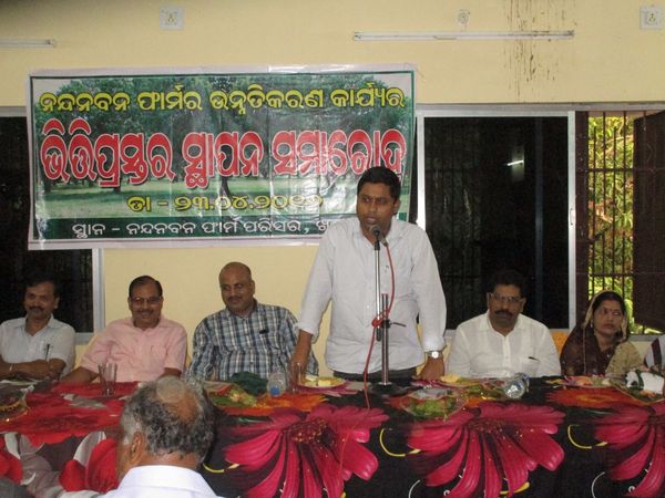foundation stone laying ceremony-- " Nandana Bana"- A 60 Hectare (around 130 Acre) mangrove and forest area in Khandapada will be developed as an "Excellence Centre for Horticulture Farming" Farmers Training Hall, Farming Area for Hybrid Seedling of Vegetable and Fruits , Renovation of Pond, Boundary Wall, Concrete Road will made.